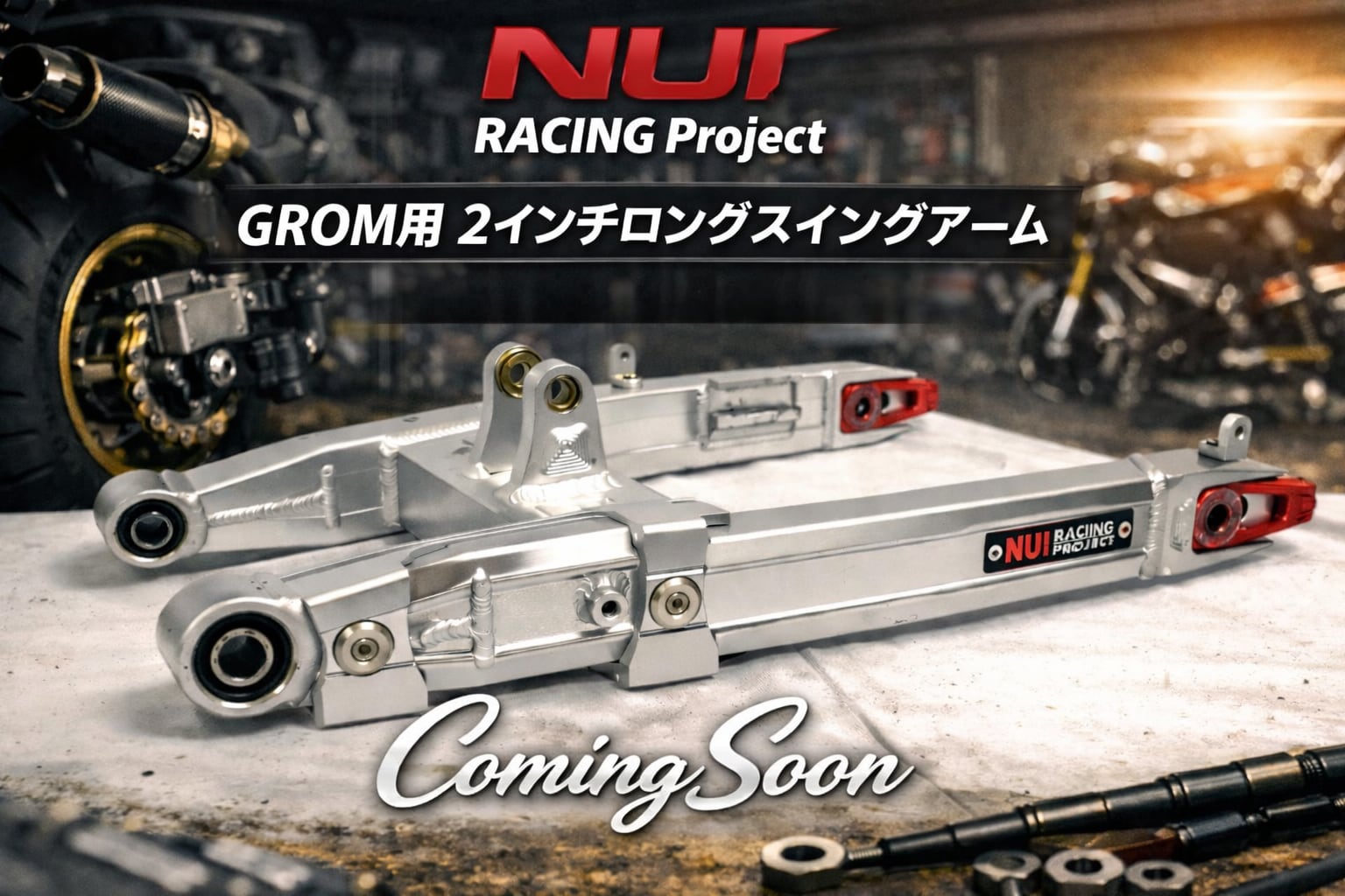 Nui Racing Project GROM用 2inロング強化アルミスイングアーム シルバーアルマイト